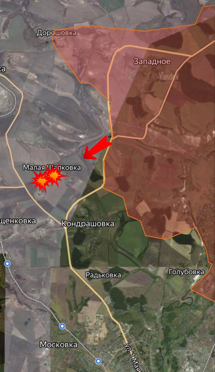 Севернее Малых Щербаков противник, после высадки пехоты, возвращался на исходную позицию, после того как наши операторы выявили исходную позицию и точку высадки пехоты, по двум объектам были нанесены удары сбросами.
