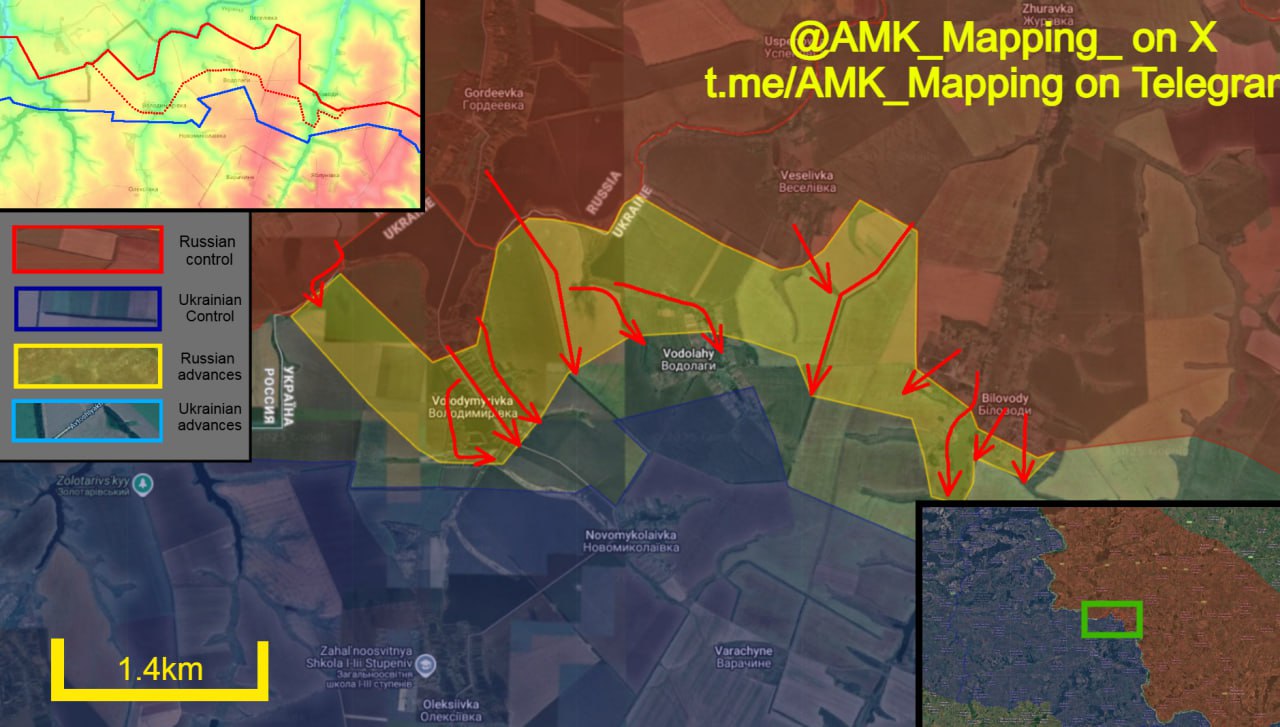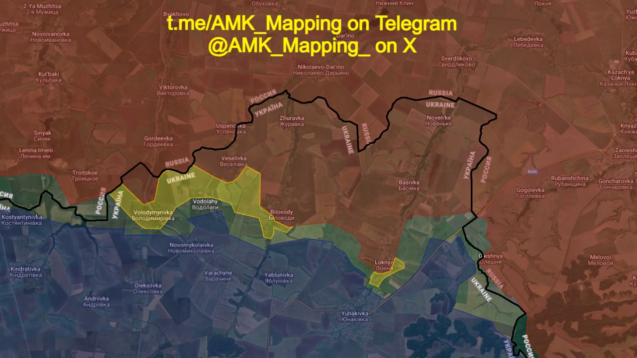 Российские войска завершили захват села Беловоды, наступая со своих позиций в центре села и заняли самые южные дома. Они также продвинулись с западной части к юго-западным домам, одновременно занимая дополнительные позиции в прилегающих лесопосадках. На западе они продвинулись вниз по лесополосе с позиций в селе Веселовка, достигнув юго-восточных подступов к селу Водолаги и заняв позиции на тактических высотах.