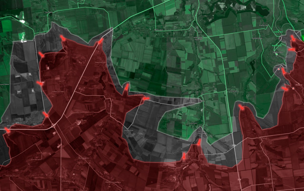 После первых успехов, включая занятие Катериновки и села Новое, темпы продвижения несколько снизились. За последнюю неделю удалось продвинуться на 1 км в сторону Зеленой Долины и частично обойти Редкодуб с юга.