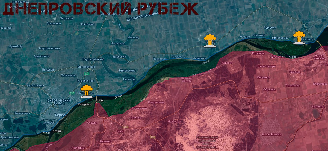 Группировка «Днепр» изолировала правобережье. Украинские войска вынуждены двигаться только малыми группами или одиночками, скрытно. Подвоз боеприпасов и техники по воде сорван: катера регулярно уничтожаются FPV-дронами и артиллерией. Попытки высадки на Тендеровской косе пресекаются каждый раз.