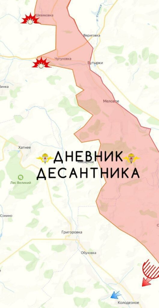 На участке к востоку от Купянска-Узлового российские войска добиваются локальных успехов, продавливая оборону противника на отдельных участках. Несмотря на то, что значительных территориальных изменений пока не наблюдается, эти продвижения являются важными с тактической точки зрения. На северном фланге, российские силы устремляются к окраинам села Колодезное и демонстрируют наступательные действия у населенного пункта Шевяковка. Эти маневры свидетельствуют о стремлении расширить плацдармы и улучшить свои позиции на данном направлении, — КЛИК.