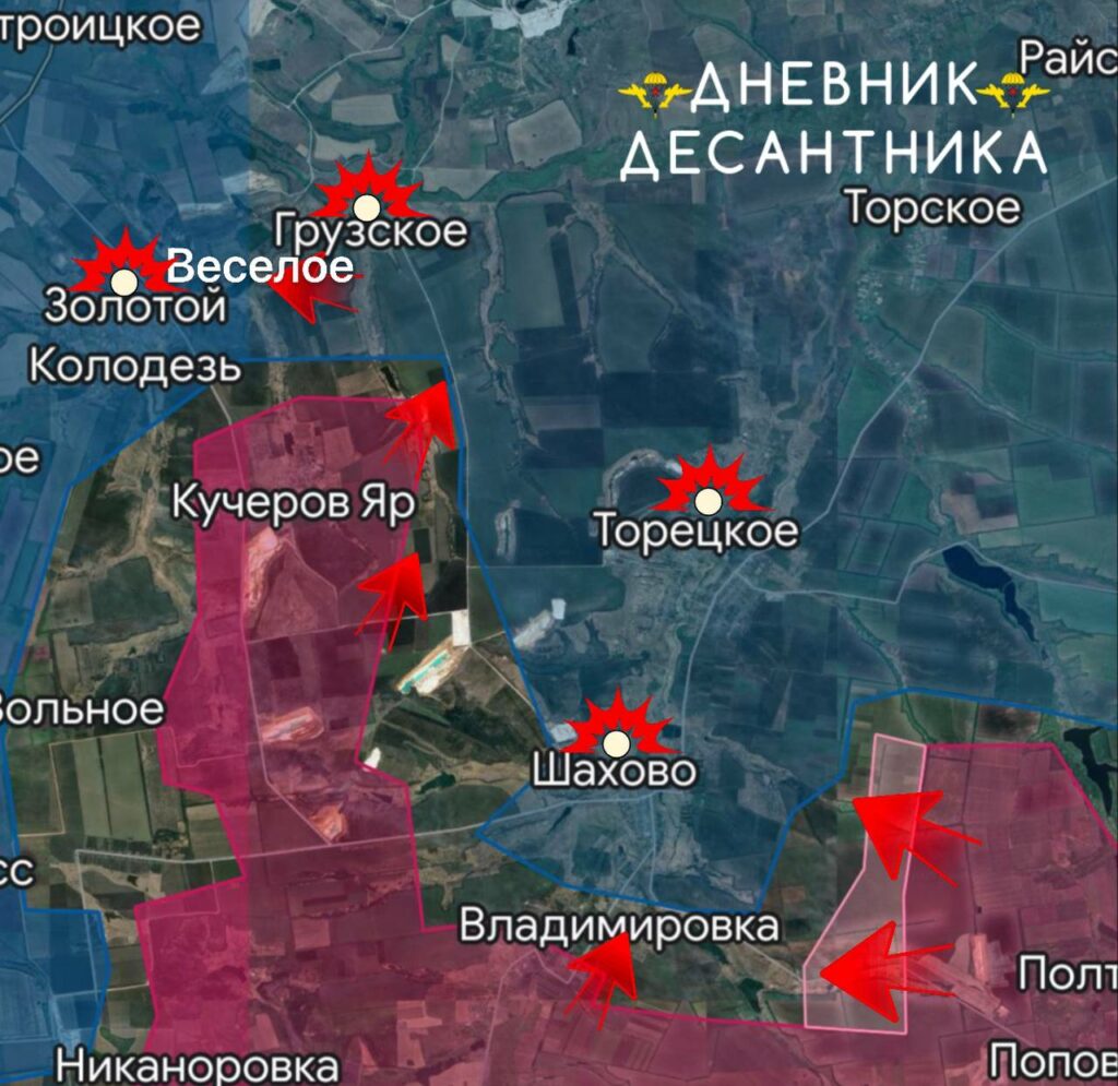 В Веселом также замечены передвижения наших войск. В центральной части села бойцы ВС РФ закрепились в юго-восточной части.