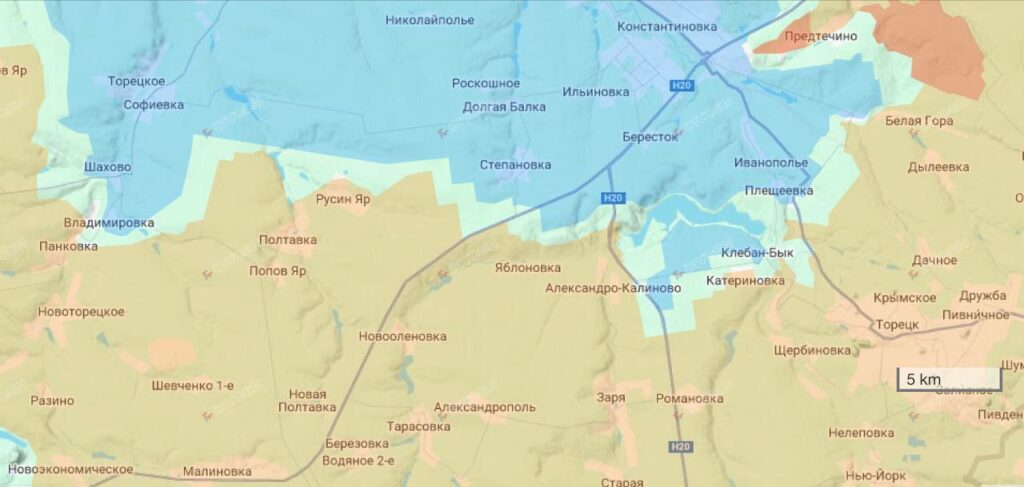 В Катериновке продолжаются ожесточённые столкновения. Российская армия активно использует корректируемые авиабомбы и реактивные системы залпового огня для разрушения оборонительных позиций противника. Цель очевидна — лишить украинские силы возможности удерживать линию обороны и обеспечить выход на трассу в сторону Константиновки.
