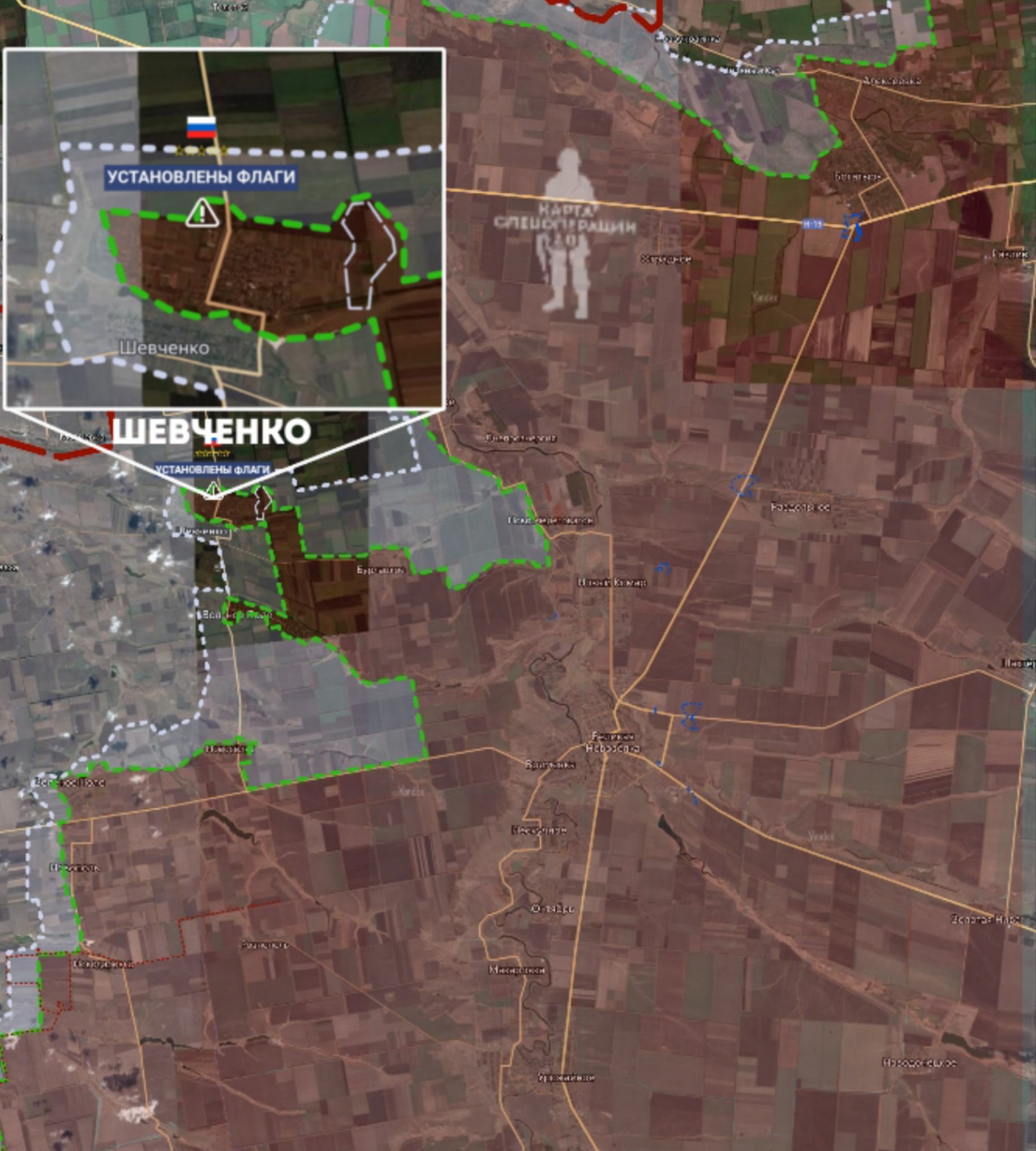 Подразделения ГрВ «Восток» освободили н.п. Шевченко (в 2,3 км от границы Днепропетровской обл.) и заняли позиции противника севернее. ВС РФ атакуют позиции противника в направлении Воскресенки и Камышевахи ДНР и Малиевки Днепропетровской обл.