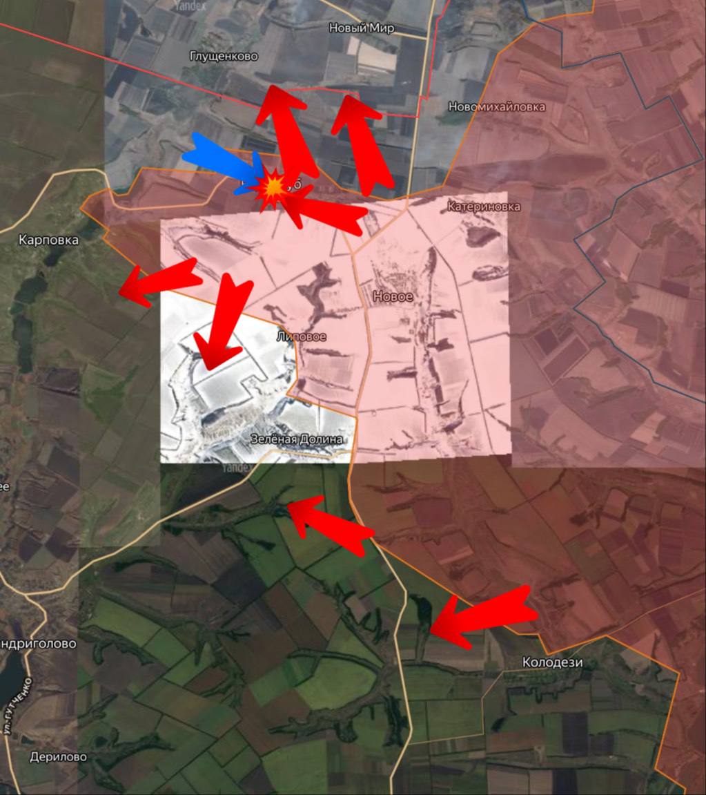Севернее Новосергеевки наши подразделения продвинулись в направлении Молодецкого. Южнее Новониколаевки и Муравки наши подразделения зачищают позиции противника в посадке. В Муравке — встречные бои на восточной окраине.