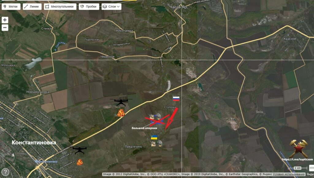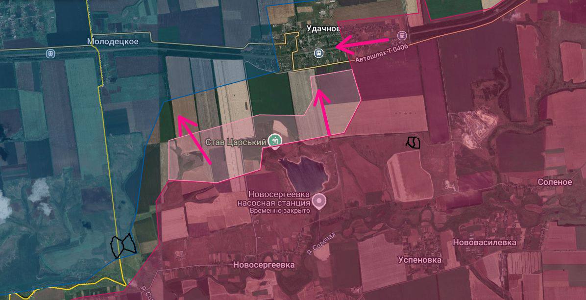 Напряжённые бои в Удачном, где наши штурмовые подразделения подходят по частному сектору к центральной части посёлка. Из района балки Долгопрудная ВС РФ атакуют в направлении южной и юго-западной окраины Удачного.