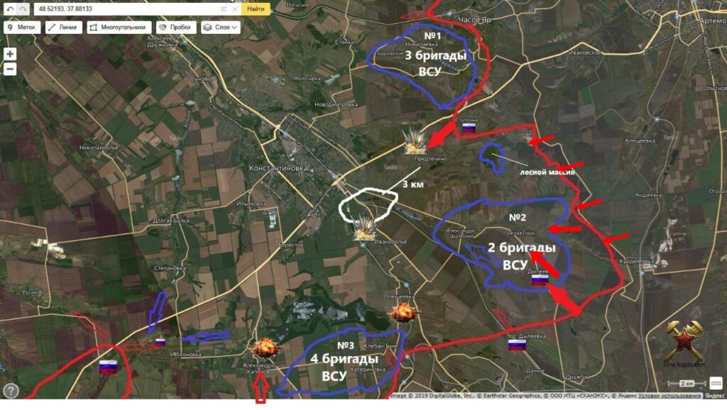 На Константиновском направлении Силы Российской Армии продолжают активное наступление, наращивая давление на оборонительные позиции противника. Ключевыми задачами являются освобождение ключевых населённых пунктов и расширение зоны контроля, что позволит российским войскам укрепить позиции и подготовиться к следующим этапам наступления.