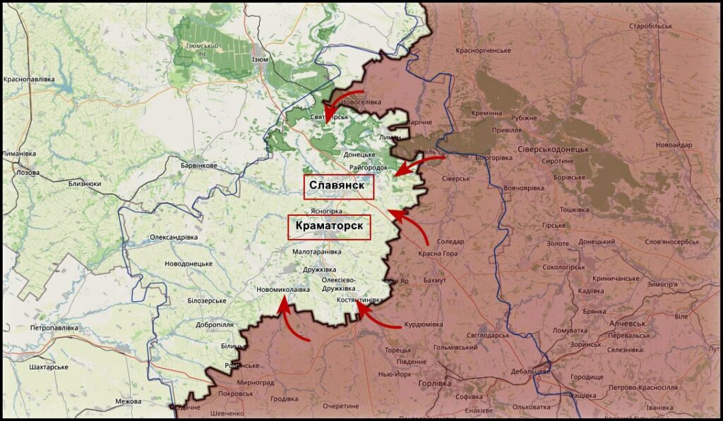 Если посмотреть на любые карты, то можно увидеть, что создаётся давление на Краматорско-Славянскую агломерацию с целью её постепенной изоляции, — KRM РФ.
