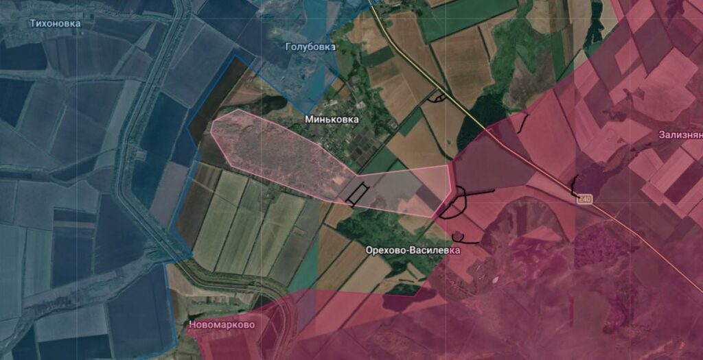 Одно из подразделений Доброкора полностью зачистило лес возле Миньковки и западную часть Миньковки. Остальная часть села в серой. Туда регулярно пытаются заскочить всушники, но для них это немножечко килл-зона.