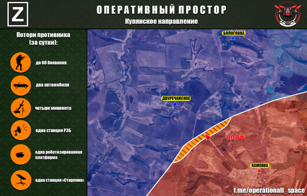 В районе города противник возводит переправы для обеспечения своих побрАтЫмов на северном берегу р. Волчья, мы своевременно переправы уничтожаем.