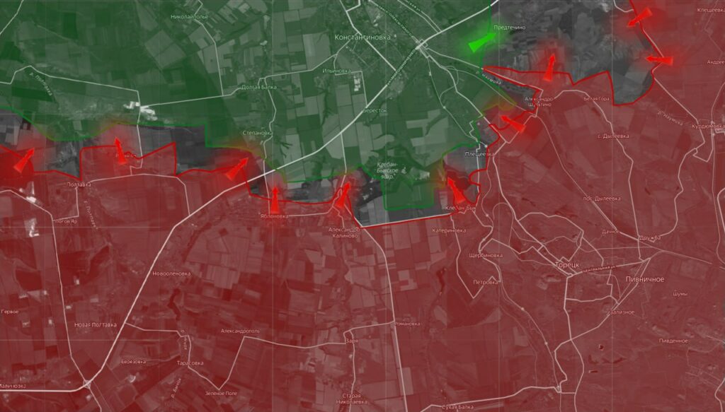 На Константиновском направлении после зачистки кармана южнее Клебан-Быкского водохранилища наши выравнивают фронт, чтобы вплотную подойти с юга к Константиновке, закрепляются вдоль трассы Александро-Калиново – Катериновка, продвигаются в полях между Плещеевкой и Иванопольем.