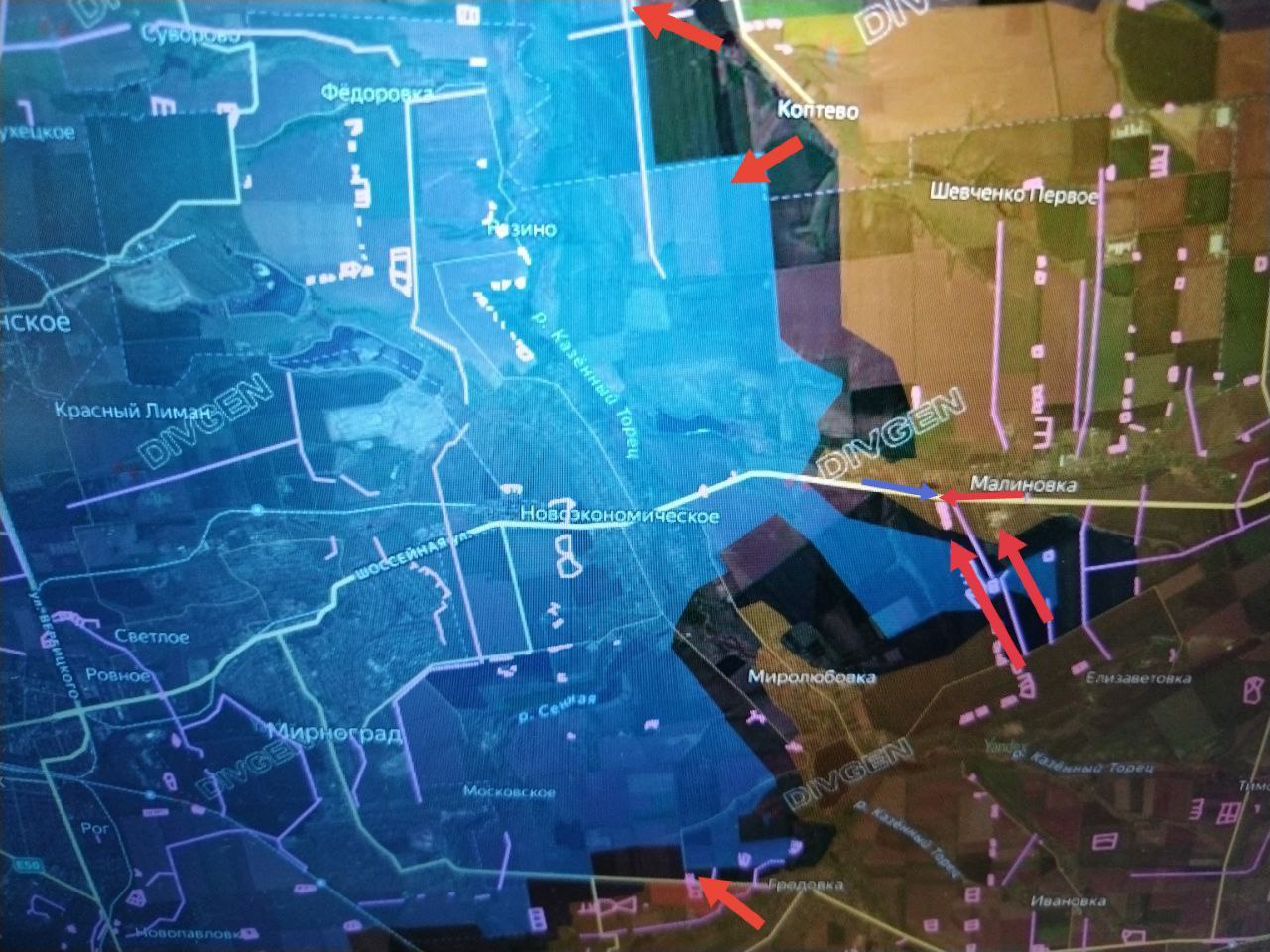 Российские войска добились тактического успеха в районе Нового Мира, приближаясь к Петровскому с двух направлений — от Макеевки и со стороны Ольговки. Это создаёт угрозу окружения и дальнейшего давления на позиции противника.