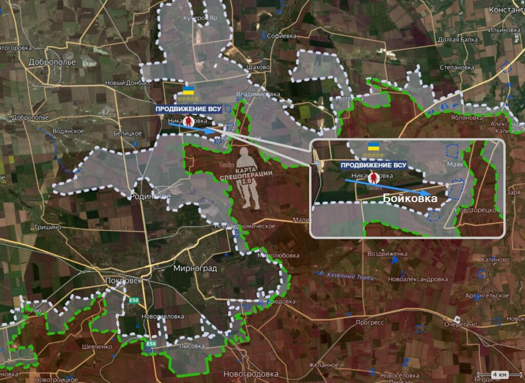 На Покровском фронте идут бои в западной части Удачного, его большая часть под нашим контролем. В районе Покровска тяжёлые городские бои. ВС РФ расширяют территорию контроля и углубляются в городскую застройку. На восточном охвате Покровска ВС РФ наращивают давление в районе Новопавловки, где ВСУ пытаются стабилизировать фронт. В районе «Добропольского выступа» враг не прекращает попыток срезать выступ в районе Панковки и Новоторецкого, там идут тяжелейшие бои. Наши военные имеют тактические успехи в районе Нового Донбасса, Золотого Колодезя, Кучеров Яра и Шахово.