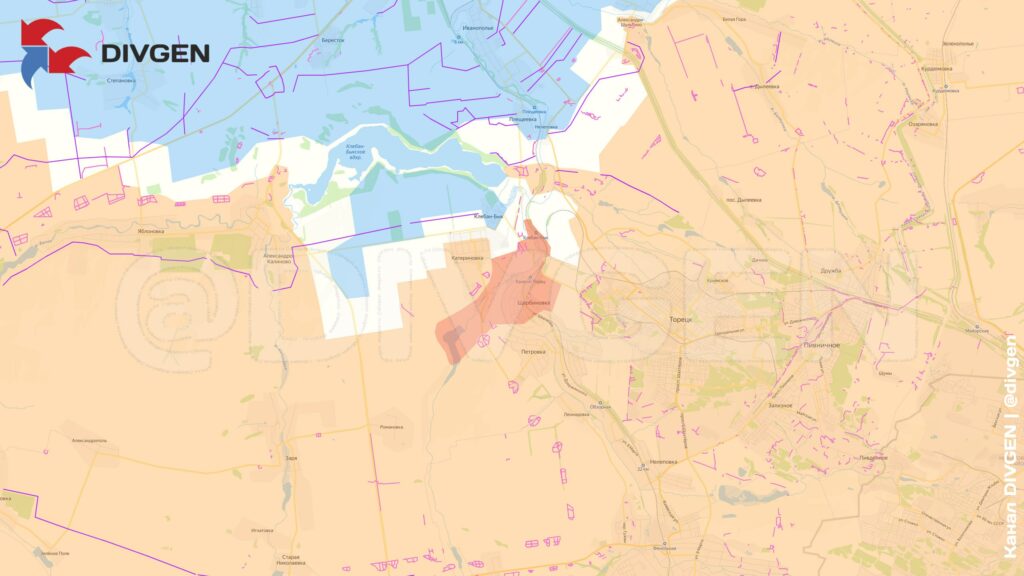 На Константиновском фронте в районе Полтавки – Русин Яра идут позиционные бои. Южнее Клебан-Быкского водохранилища ВС РФ начали зачищать образовавшийся карман. В районе Катериновки и Клебан-Быка идут бои, сёла находятся в серой зоне. Севернее Торецка сообщают об успехах в Александро-Шультино. По неподтверждённым данным, ВС РФ закрепились в Предтечино и вытесняют оттуда противника. Наши штурмовики развивают наступление из Часов Яра в сторону Дружковки.
