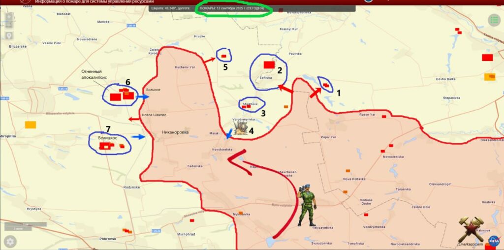 На западном фланге Покровского направления позиционные бои, ситуация без изменений. На северном охвате Покровска российские войска с юга и с севера от Родинского приближаются к дороге на Краматорск – это единственная дорога в этом районе, пока не подконтрольная нашей армии. Противник продолжает мощные атаки и нацелен на то, чтобы срезать Добропольский выступ. Основные атаки врага идут в районе Бойковки и Новоторецкого. Сообщается, что Новоторецкое по-прежнему под контролем российских войск, а вот Бойковка перешла в серую зону. Наши штурмуют Новое Шахово.