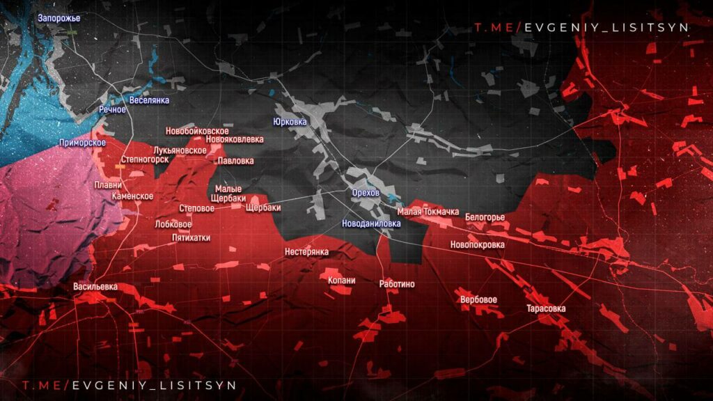 Продолжаются бои в районе Магдалиновки и Новояковлевки. В небе фиксируется большое количество ударных и разведывательных БПЛА. Российская артиллерия и авиация ведут активную совместную работу по подавлению противника, нанося удары по пунктам временной дислокации живой силы и бронетехники как на линии боевого соприкосновения, так и в тыловых районах сосредоточения. Подразделения группировки войск «Днепр» нанесли поражение живой силе и технике 128-й горно-штурмовой бригады ВСУ в районе населенного пункта Щербаки Запорожской области. За день боев ВСУ потеряли до 30 солдат, два автомобиля и склад материальных средств, — Вестник 1430 Полка.