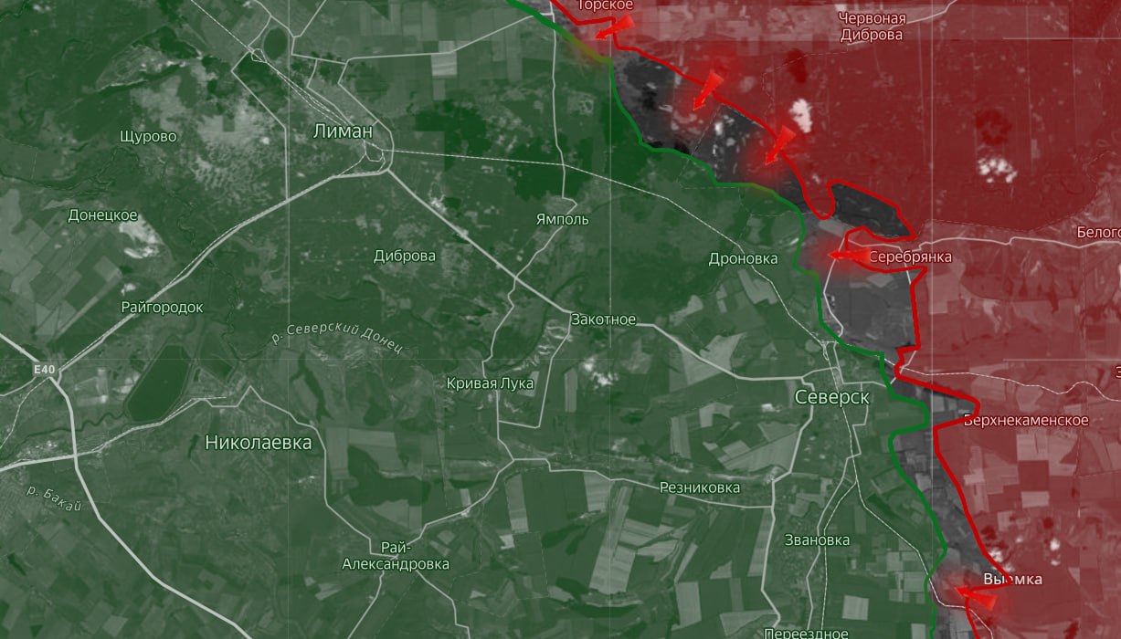 Ключевая точка — лес на северном берегу реки Северский Донец, где российские силы угрожают перекрыть дорогу в районе Дроновки. Это создаст стратегическое окружение украинских сил и приведёт к их изоляции. Если Дроновка окажется под контролем России, то Северск попадёт в полуокружение с трёх сторон, что поставит ВСУ в ещё более критическое положение.