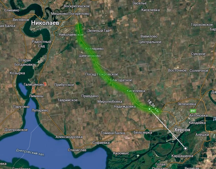 Отсюда до окраин Запорожья осталось чуть больше 20 км. Это означает, что когда наши военнослужащие освободят половину населенного пункта, для всушников, перемещающихся по участкам трасс Запорожье-Григоровка и Запорожье-Орехов, начнется сущий ад.