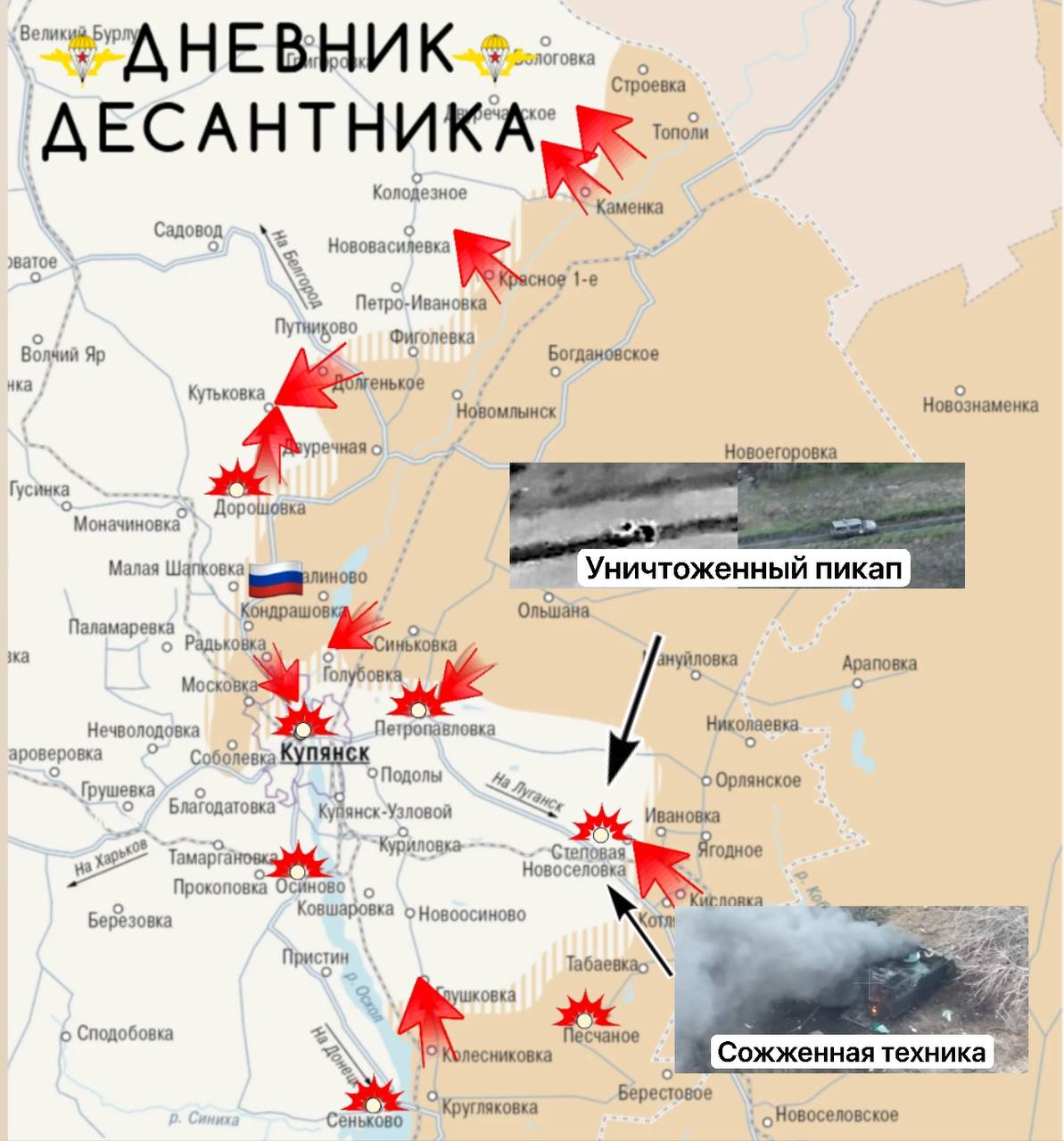 Наши войска продолжают наступать у северных окраин Купянска, Петропавловки, также в районе Степовой Новоселки.
