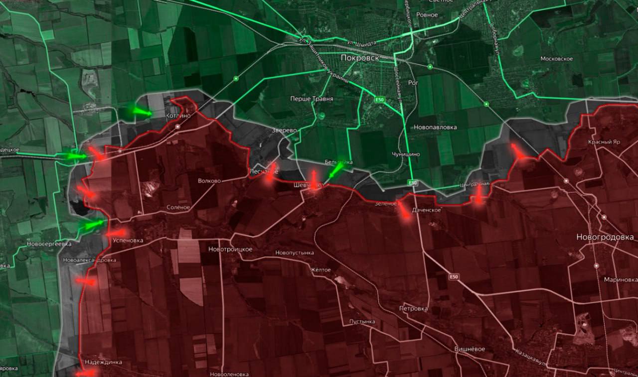 В целом можно отметить, что на всем южном фланге покровской агломерации формируется устойчивое продвижение российских войск на север в направлении Покровска.