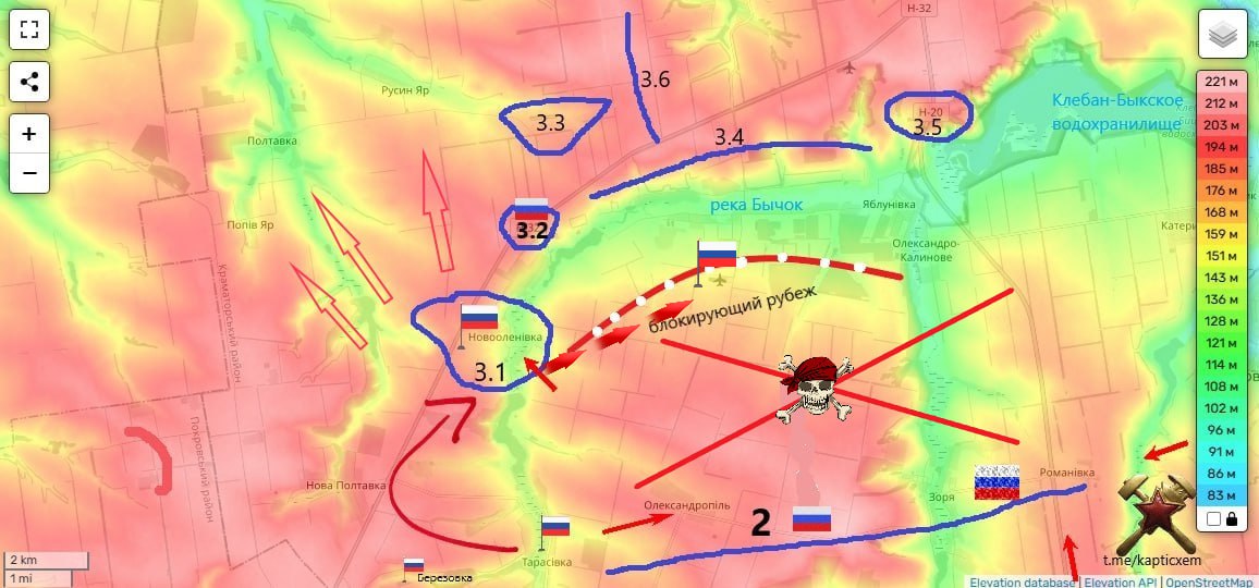 Западнее Торецка направления противнику удалось стабилизировать фронт на рубеже Полтавка — Русин Яр за счет стянутых сюда резервов, там пока без продвижения. А в Яблоновке есть успехи как внутри села, так и севернее и южнее от него. Туда же стремятся наши части со стороны Александрополя — им осталось до границ села 2,5 км. К северу от Торецка позиционные бои.