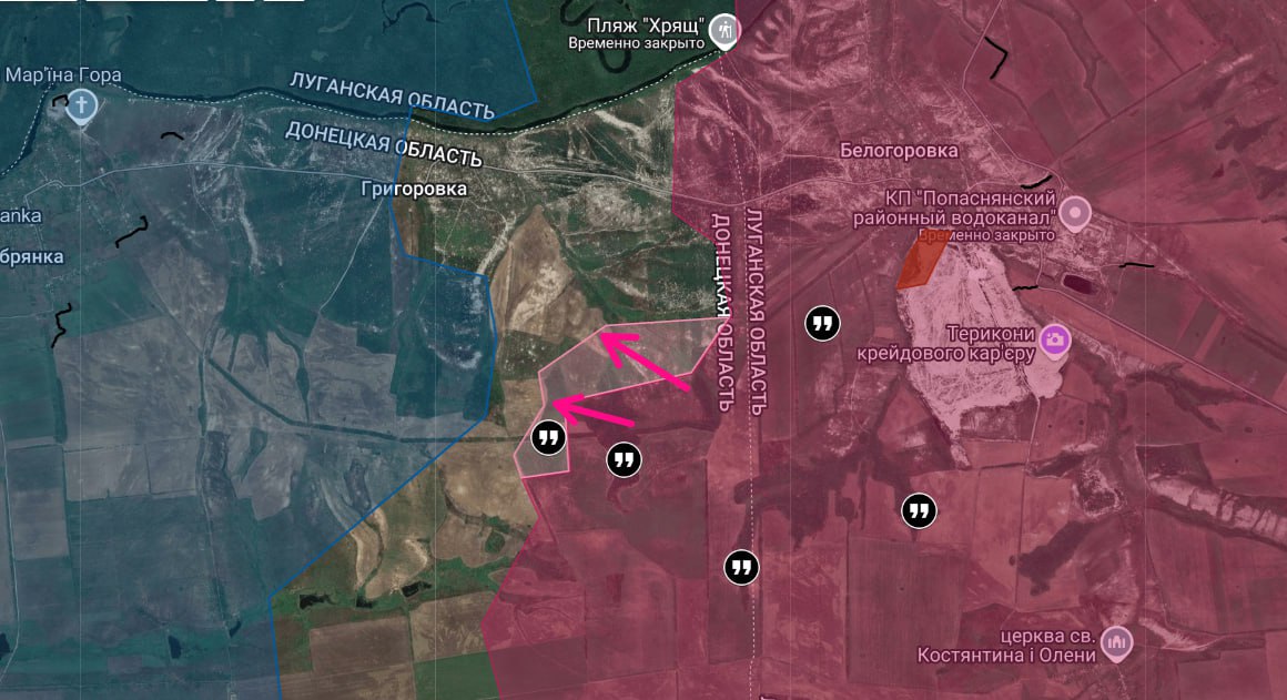 Российские войска продвинулись в районе Богатыря и атаковали опорный пункт украинских сил на южной окраине населенного пункта. Украинские военные сообщают, что ВС РФ «всеми силами набрасывается на село», а российская авиация бьет по позициям ВСУ бомбами ФАБ-500.