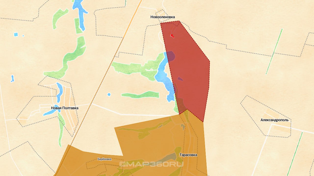 После освобождения Тарасовки наши воины продвинулись севернее и заняли половину села Новооленовка. ВС РФ расширили зону контроля. Площадь: 4.35 км²