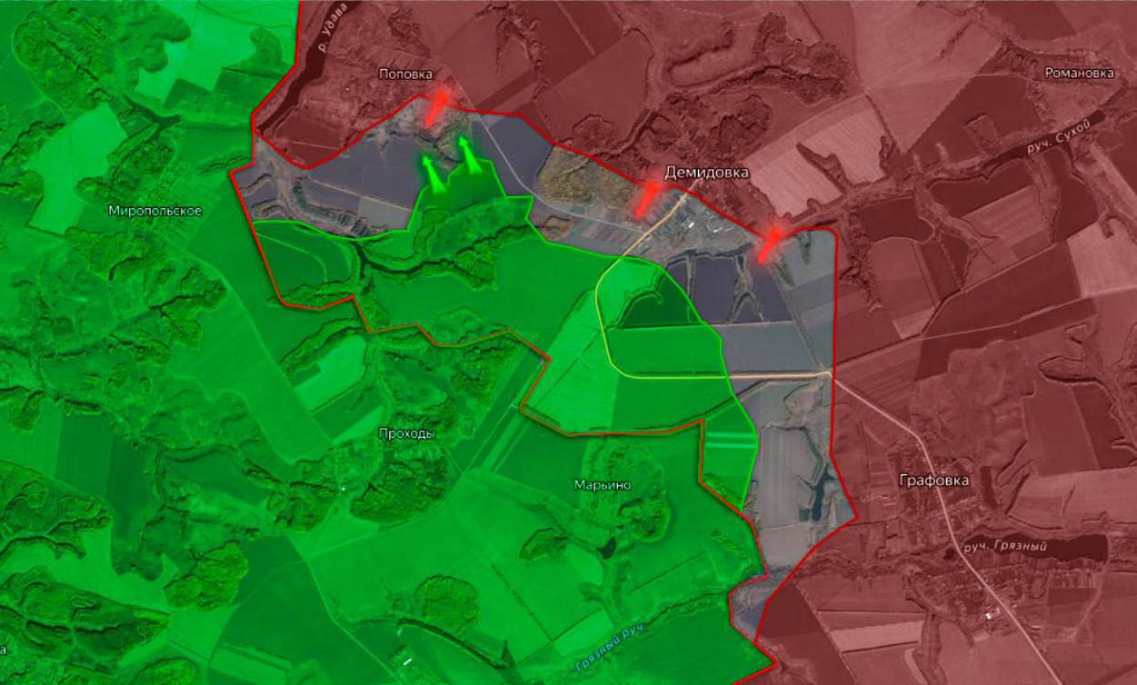 ВСУ атакуют в лесных массивах севернее Поповки, но приблизиться как к ней, так и Демидовке, несмотря на предпринимаемые попытки, у врага не получается из-за огневого контроля российскими войсками всех подступов к населенным пунктам и мониторинга местности дронами ВС РФ.