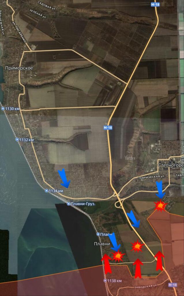 Участок Каменского. Противник снова атакует наши позиции, малыми группами по 5-7 человек, ВСУ от Степногорска и Приморского пытаются отбить утраченные позиции.