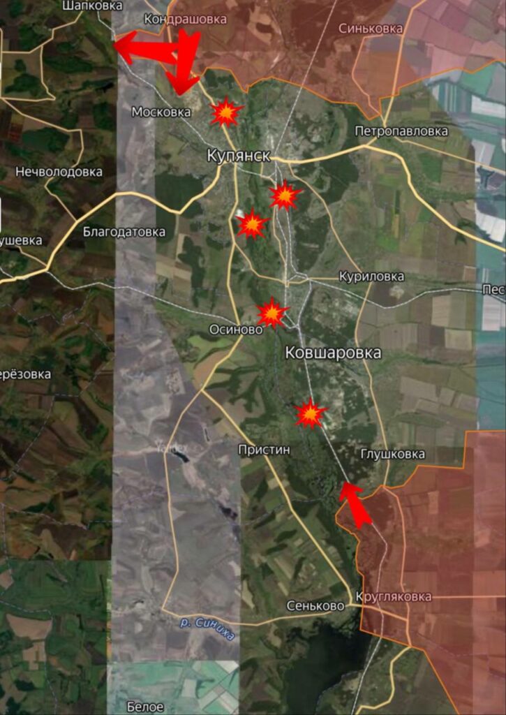 Наши бойцы продвигаются вдоль реки на севере Купянска, также севернее Московки в ходе успешных наступательных действий продвинулись широким флангом в 1,5 км и вглубь на 2 км.