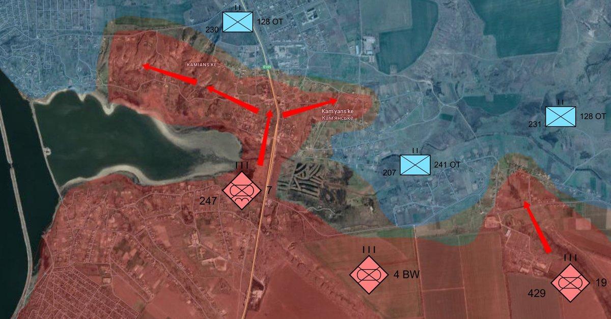 Одновременно с этим российский 429-й мотострелковый полк продолжил давление на юго-восточную часть Каменского, где ВСУ с декабря 2024 года удерживали небольшой участок плацдарма, занятый силами ССО «Кракен». Также там действуют остатки 241-й территориальной бригады, сведённой из батальонов 204, 207 и 251. Позиции этих подразделений сейчас также находятся под угрозой полного отрезания и отката за Янчекрак.