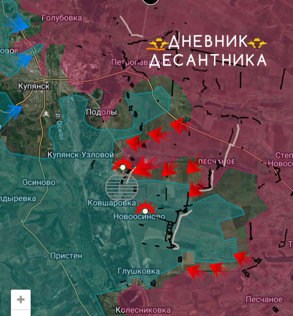 Линия боевых действий также расширена и в Ковшаровке, где идут бои за территорию пром предприятий. Со стороны обоих Песчаных бойцы 272-го полка и 47-й танковой дивизии ведут бои за опорные пункты, которые прикрывают восточные окраины Глушковки и Новоосиново, — невник Десантника.