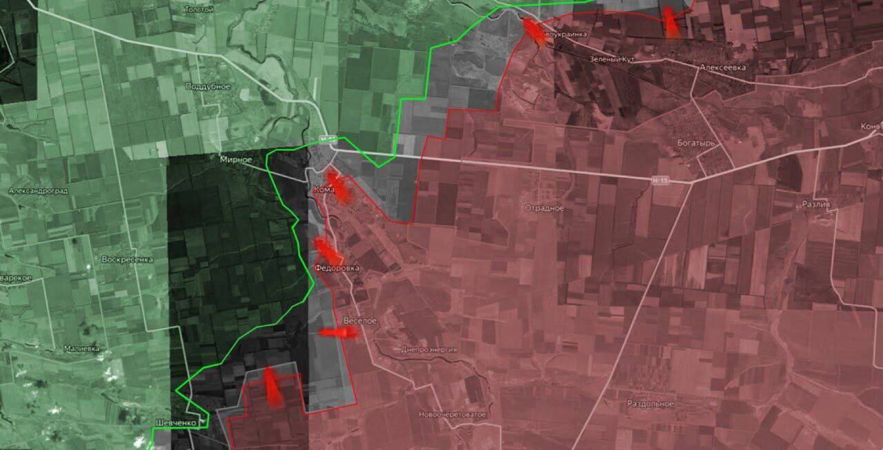 На Угледарском направлении позиционные бои в районе Шевченко и западнее Вольного Поля. Южнее Комара в районе Фёдоровки ВС РФ выбили противника из нескольких опорников. Севернее развивается наступление на Запорожье и Ялту. На северном берегу Волчьей продолжаются бои в Новоукраинке, не закончена зачистка Зелёного Кута – там сохраняются отдельные очаги сопротивления, — пишет Олег Царёв.