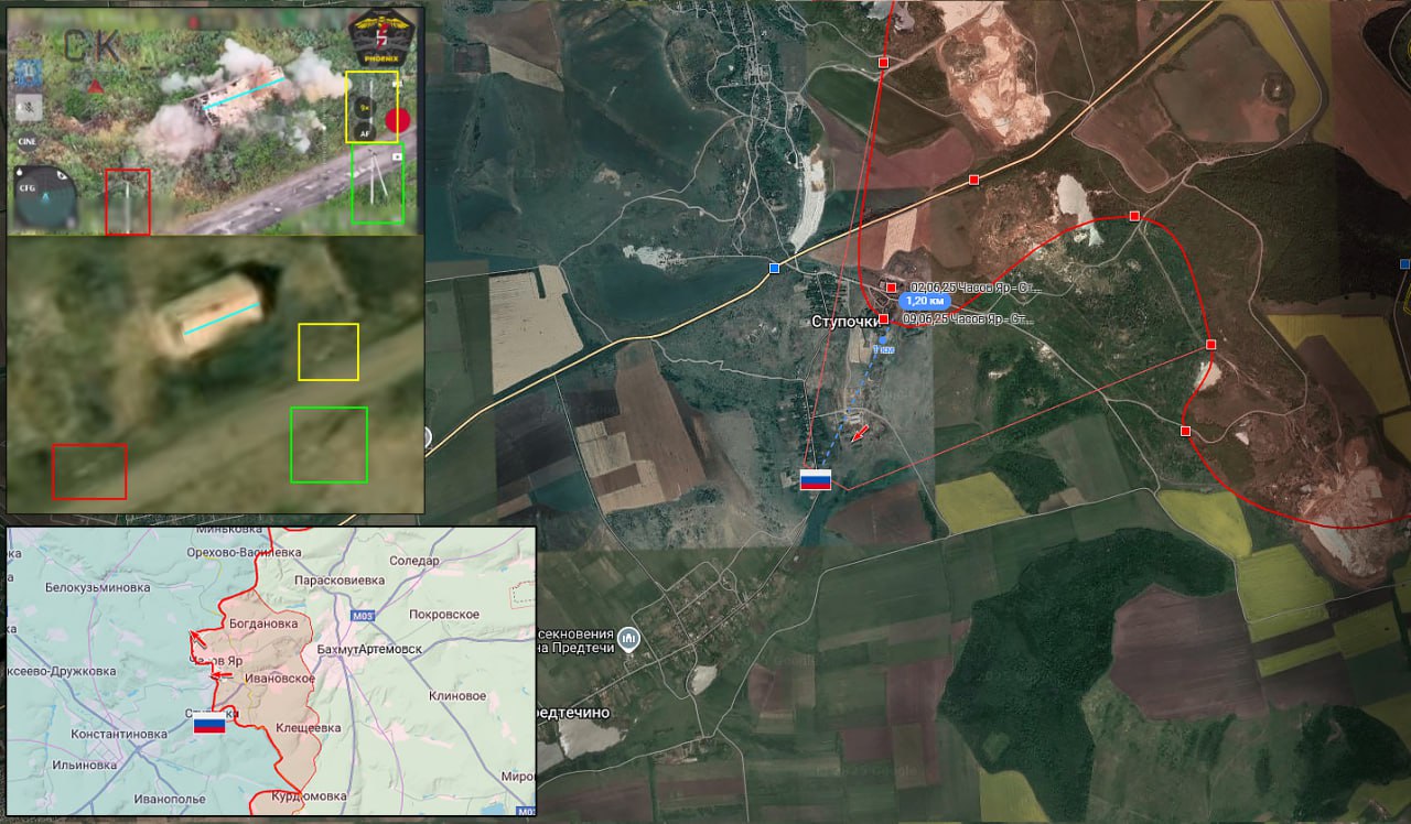 На Часовярском участке фронта бои в городе, данных об изменении ситуации нет. Позиционные боевые действия в районе Артёмовска. ВС РФ продвинулись в населённом пункте Ступочки на 1 км и вышли в южной часть заняв новые позиции в жилой застройке. Передовая ВС РФ позиция под огнём ВСУ.