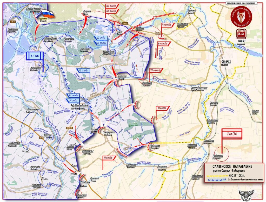Разгром гарнизона ВСУ в Константиновке и штурм Дружковского направления. Карта боевых действий на Украине на вечер 28 марта 2026