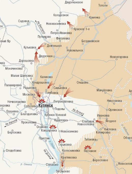 На северных окраинах Купянска продолжаем выбивать врага, активно работает артиллерия, минометные расчёты, авиация и беспилотники российской армии.
