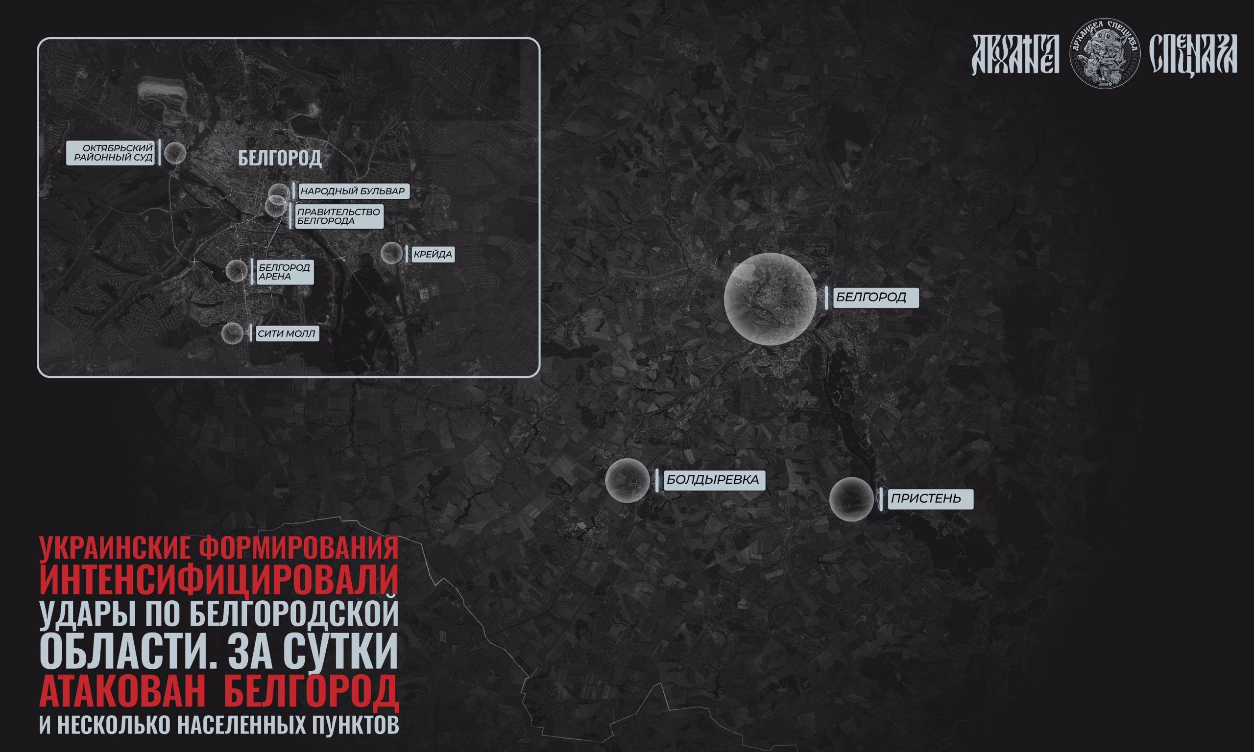 Вчера в Белгородской области украинские беспилотники атаковали гражданских. В селе Пристень погиб один человек, двое ранены. В Болдыревке также есть пострадавший. В Белгороде ВСУ с утра до ночи атаковали город. Часть беспилотников сбита, часть попала по гражданским объектам, включая здание правительства и «Белгород-Арену». Количество ударов по региону возросло.