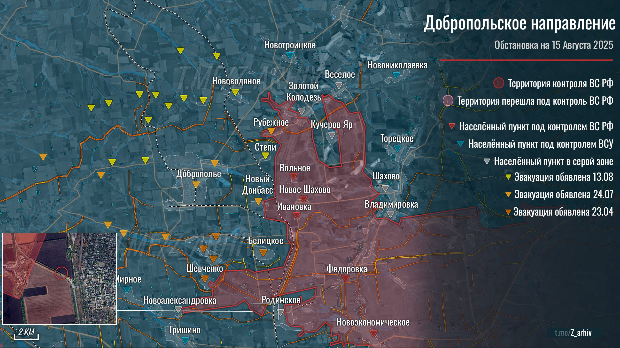 Сражения в районе Доброполья продолжаются. Вооружённые силы Российской Федерации продолжают удерживать свои позиции в населённом пункте Золотой Колодезь. По некоторым данным, они также заняли позиции в Шахово и Владимировке.