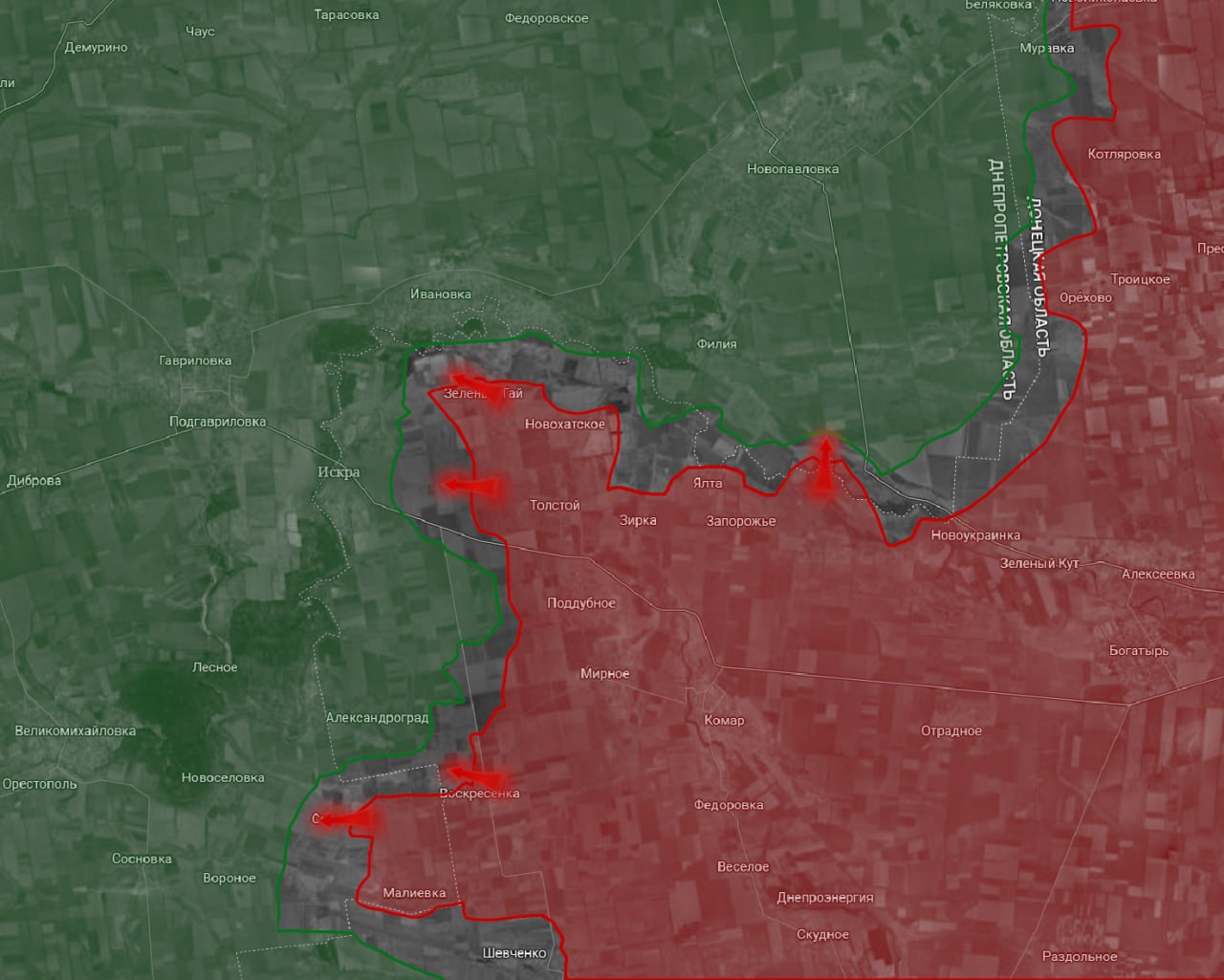Российские подразделения продолжают активные бои в Щербиновке, Катериновке, Клебан-Быке и Александро-Шультино. Бои интенсивные, с использованием FPV-дронов, миномётов и ближнего боя.