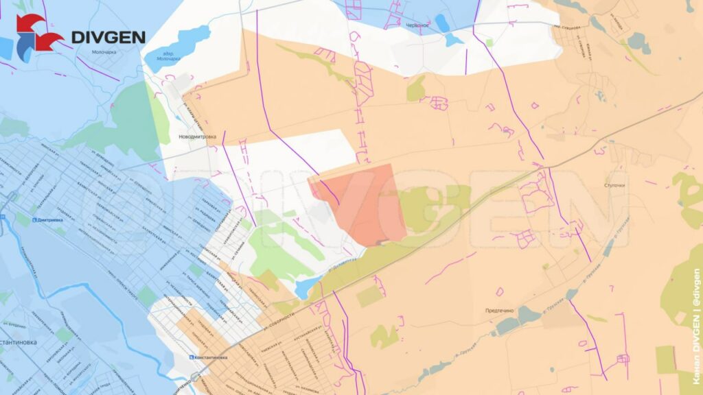 Восточнее города российские штурмовики взяли под контроль территорию садового товарищества «Металлург». Передовая позиция ВС РФ на восточной окраине города подверглась обстрелу ВСУ. ВС РФ увеличили зону контроля более 1 км, продвинувшись в восточной части Константиновки и заняв новые позиции около подстанции «Майская».