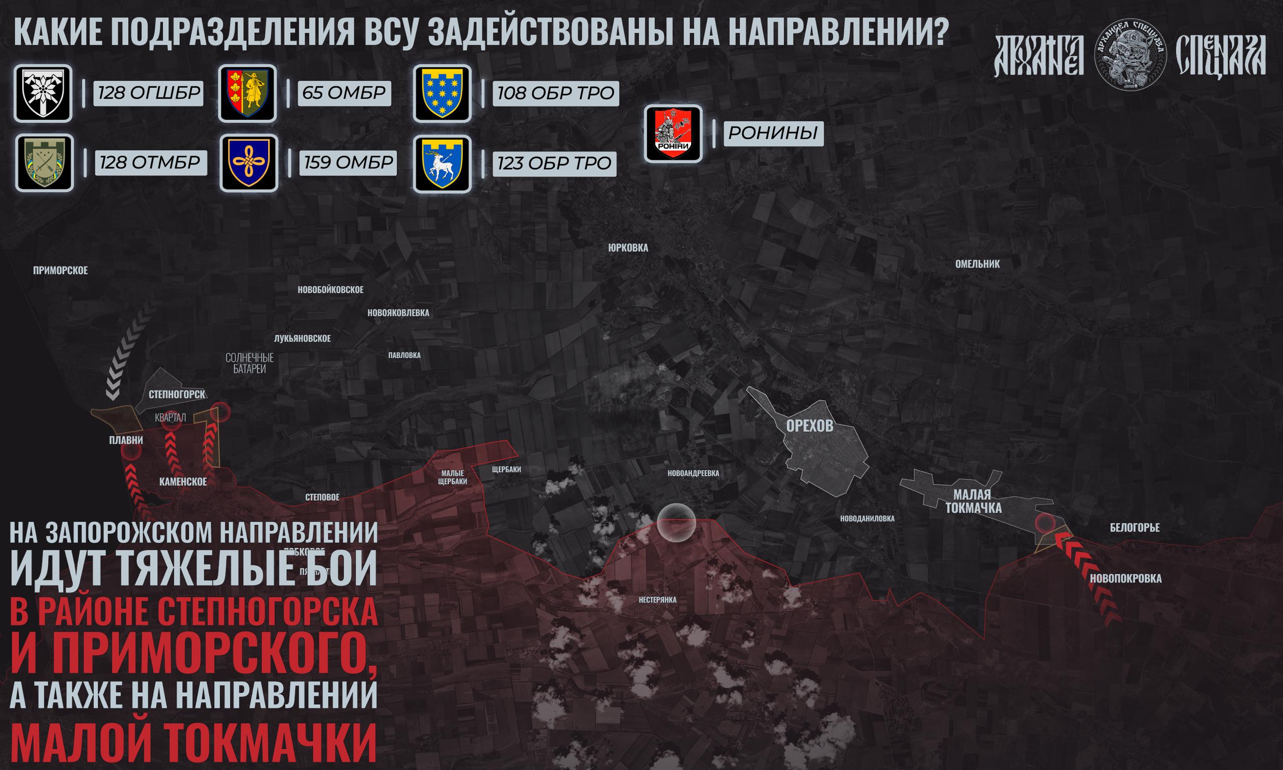 На Запорожском участке продолжается штурм Приморского и Степногорска. ВСУ практически не контратакуют, при этом активно используют артиллерию и дроны, в том числе для ударов по тылам. Позиционные бои продолжаются в районе Малой Токмачки. За прошедшие сутки Армия России продолжила наступательные действия на рубеже Работино-Вербовое. Бойцы 1430 гвардейского полка 58-й гвардейской общевойсковой армии нанесли поражение силам ВСУ южнее Новоданиловки.