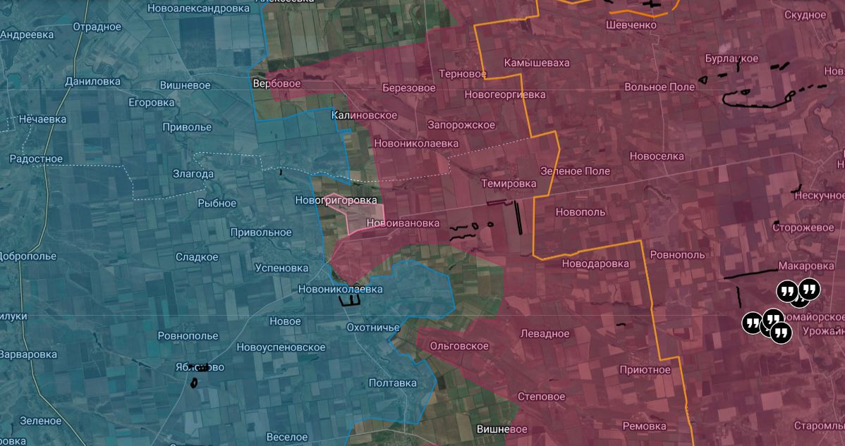 ВС РФ вошли в Золотой Колодезь к востоку от Доброполья, бои идут в центре села. Ситуация на Добропольском выступе для украинской армии продолжает ухудшаться, вслед за взятием Ивановки на западном фланге выступа, наши продвинулись и в северном направлении, снова войдя в Золотой Колодезь, который были вынуждены оставить в ходе контрудара ВСУ. На данный момент идут ожесточённые бои, противник пытается выбить наших обратно, но безуспешно. И это на фоне бравурных заявлений Сырского о якобы «разгроме» и «окружении» российской группировки на Добропольском выступе.