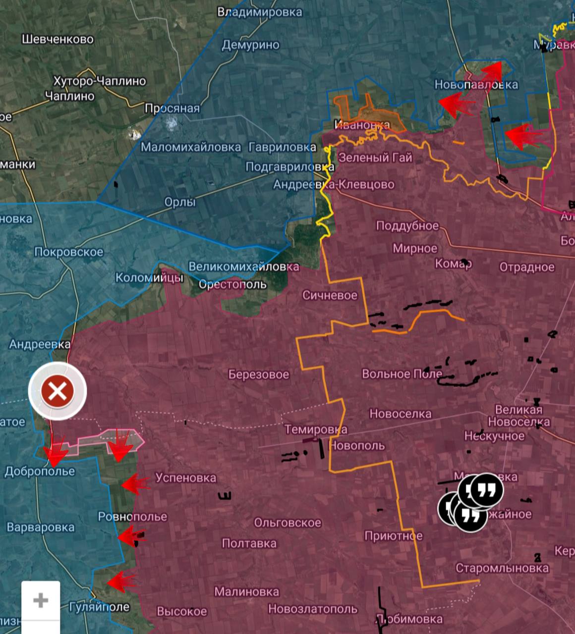 Также бои идут в северной части Доброполья, хохол оттягивает остатки за реки Гайчур и Волчья. При отступлении сопротивления практически не оказывают, положение у них критическое.