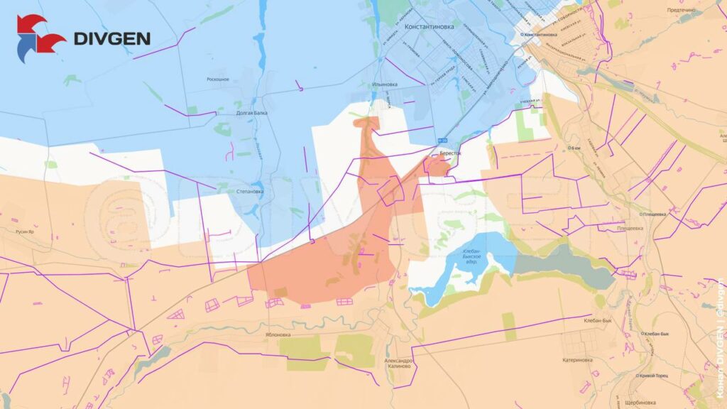 Армия России развивает фланговый охват Константиновки. На юго-западе от города наши приступили к штурму сёл Ильиновка, Бересток, а на северо-востоке – Новодмитровки. От Новомарково ВС РФ продвигаются на север, сражаются за Миньковку, где уже контролируют восточную часть. Ожесточённые бои идут восточнее, в лесах у дороги на Приволье. ВС РФ вошли в н.п. Ильиновка и Бересток, так же зашли в Новодмитровку и вышли к Водохранилищу Молочарка