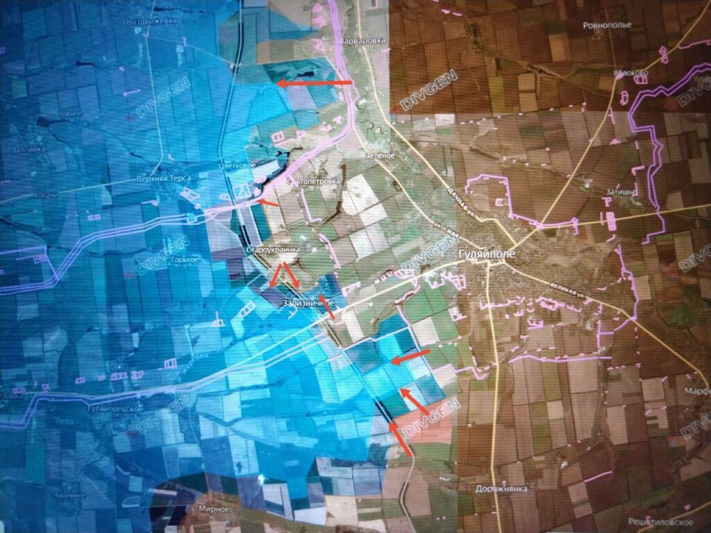 Подразделения ГрВ «Восток» продолжают наступление в направлении Запорожья и Орехова на левом берегу р. Гайчур. Западнее Гуляйполя, после освобождения Староукраинки наши штурмовые группы вышли на северную окраину Зализнычного (Железнодорожного). Подразделения, атаковавшие посёлок с юга, заняли центральную его часть северо-восточнее ж/д путей. Гарнизон противника ведёт бои в полуокружении.