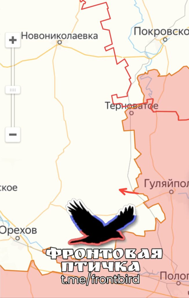 Противник перебрасывает резервы и пытается удержать наши войска на рубеже Верхняя Терса — Воздвижевка — Рождественское, подготовленном к обороне, чтобы не допустить прорыва наших войск к дороге Новониколаевка — Орехов. На рубеже Братское — Терноватое ВС РФ отражают контратаки противника. В целом, несмотря на предпринимаемые усилия, противник продолжает отползать на запад, — Военкор Котенок.