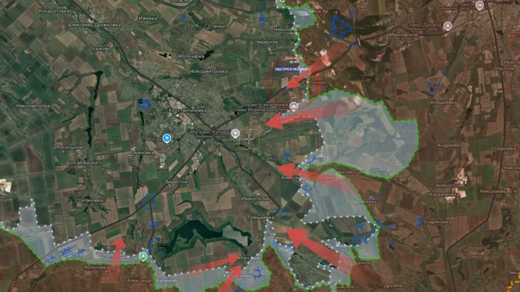 На Константиновском участке в районе Полтавки без изменений. Севернее Торецка ВС РФ зачищают дачи неподалёку от Александро-Шультино. От Часов Яра наши войска продвинулись севернее дороги на Константиновку. У противника сетуют на успехи армии Росси в районе Ступочек и Предтечино.