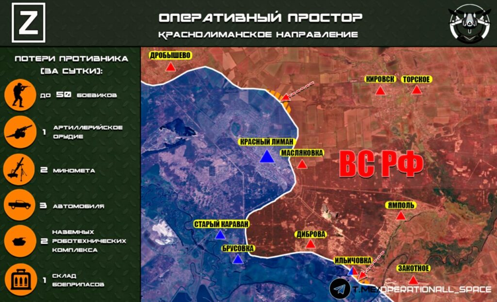 На Северском направлении в Миньковке ситуацию стабилизировали. На участке в районе Фёдоровки Второй, Никифоровки ВС РФ усиливают давление на противника в районе Дибровы и Липовки. В Кривой Луке и Калениках позиционные бои. Есть тактические успехи в районе Дибровы, что южнее Красного Лимана, где наши войска расширяют зону контроля.