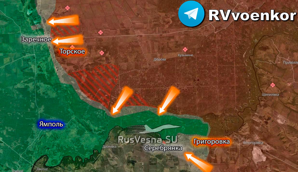 В настоящее время российские войска стремятся полностью вытеснить ВСУ из Серебрянского лесничества и завершить многолетнюю историю боёв за него. Армия России оказывает давление в направлении Ямполя и уже фиксировалась в районе дороги Ямполь-Заречное. В самом Заречном ситуация также складывается неблагоприятно для ВСУ, так как русские постепенно затягиваются в населённый пункт мимо позиций, и выбивать их оттуда становится всё труднее».