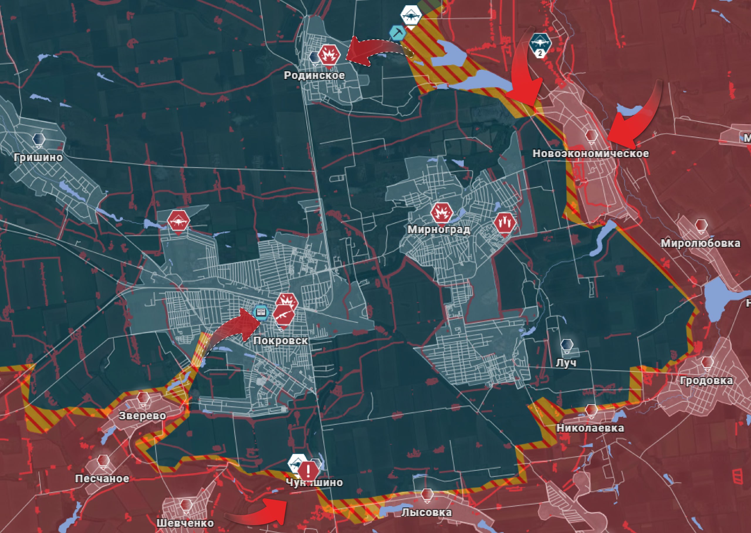 На Покровском участке позиционные бои юго-западнее Покровска. В районе Чунишино и Лысовки продолжаются попытки проломить оборону противника. Севернее Мирнограда в районе Красного Лимана и Родинского продолжаются бои, причём в этот город ВС РФ зашли с востока и с севера. Еще севернее наши бойцы вышли к окраинам Шевченко и одновременно начали продвигаться к Гришино. ВС РФ ведут бои на подступах к Новому Донбассу, Рубежному и Кучерову Яру.